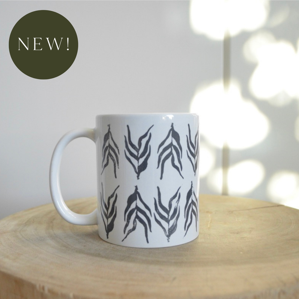 Who says your coffee cup has to be boring? With this 11 oz ceramic beauty, you get a cup full of personality, thanks to the unique block print design I created just for you using some dried palm branches as my inspiration! This coffee mug is dishwasher and microwave safe.