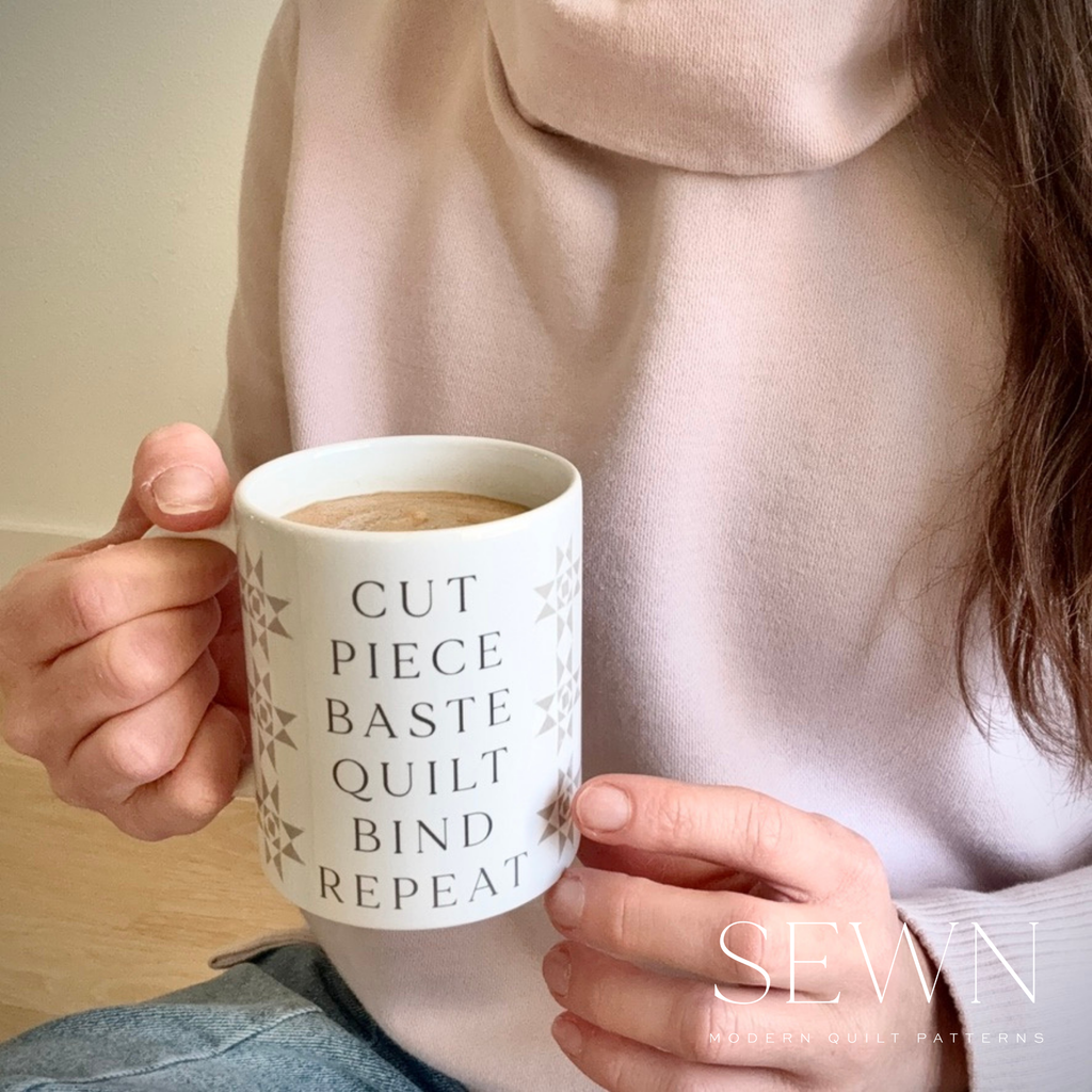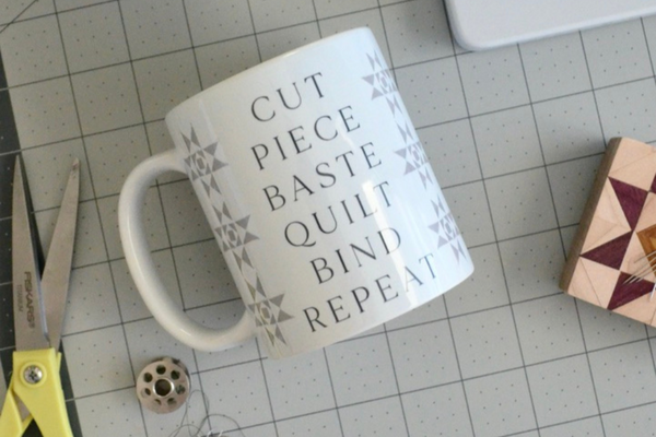 Ceramic Coffee Cup | Cut Quilt Piece Quilt Bind Repeat | Quilting Steps